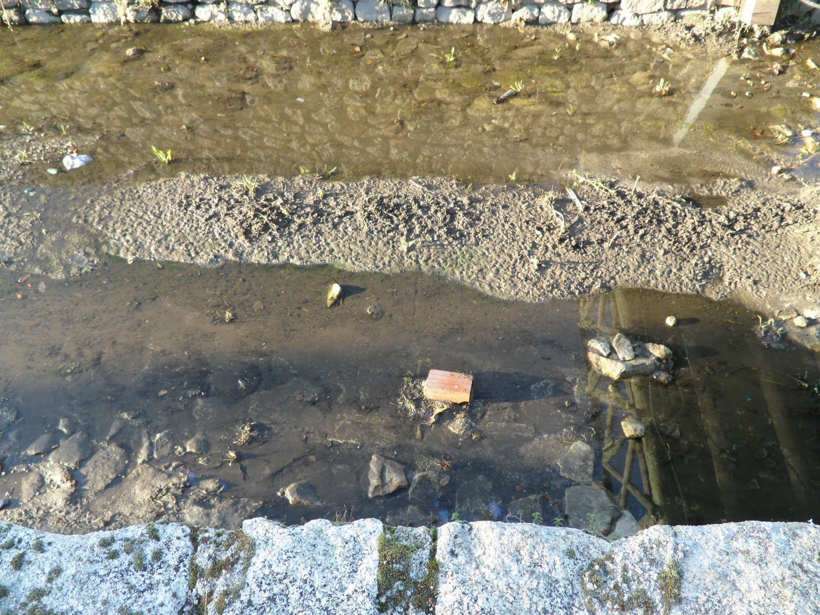 Grades de madeira partidas pelos Serviços Municipalizados da Câmara de Castelo Branco, quando, ilegalmente, ligaram diretamente os esgotos domésticos da estação elevatória, à conduta dos esgotos industriais da Oviger, matadouro industrial.